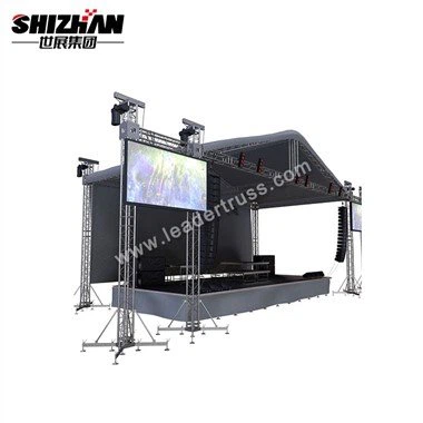 ステージ トラス表彰台はステージ ルーフ トラスとも呼ばれ、構造はアルミニウム ステージ、アルミニウム トラス、LED ライト、サウンド スピーカー、LED ウォールで構成されています。